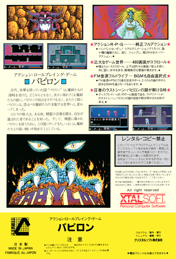 本作は1986年にリリースされたアクションRPG。プレイヤーは選ばれた旅人として魔獣たちを倒し、バビロンを平和な国へ戻すことが目的です。